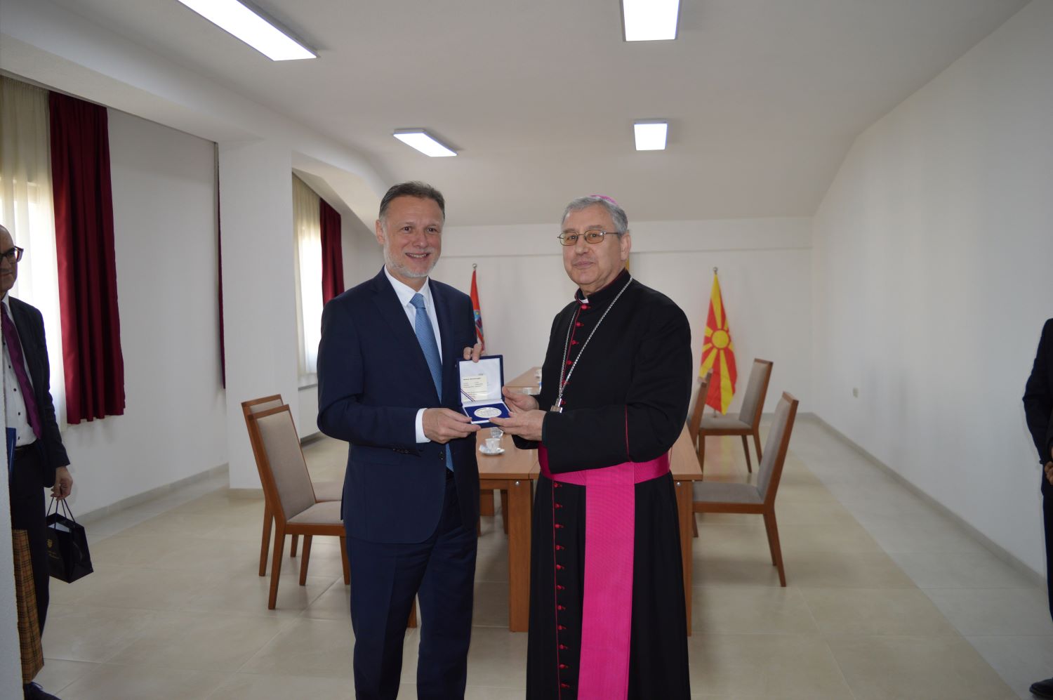Претседателот на хрватскиот Сабор Јандроковиќ на епископот Стојанов му подари медалјон со релјеф на хрватскиот Сабор.