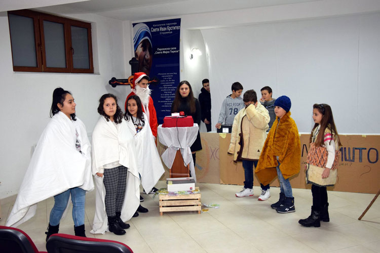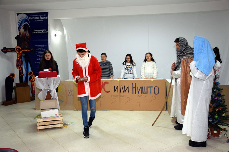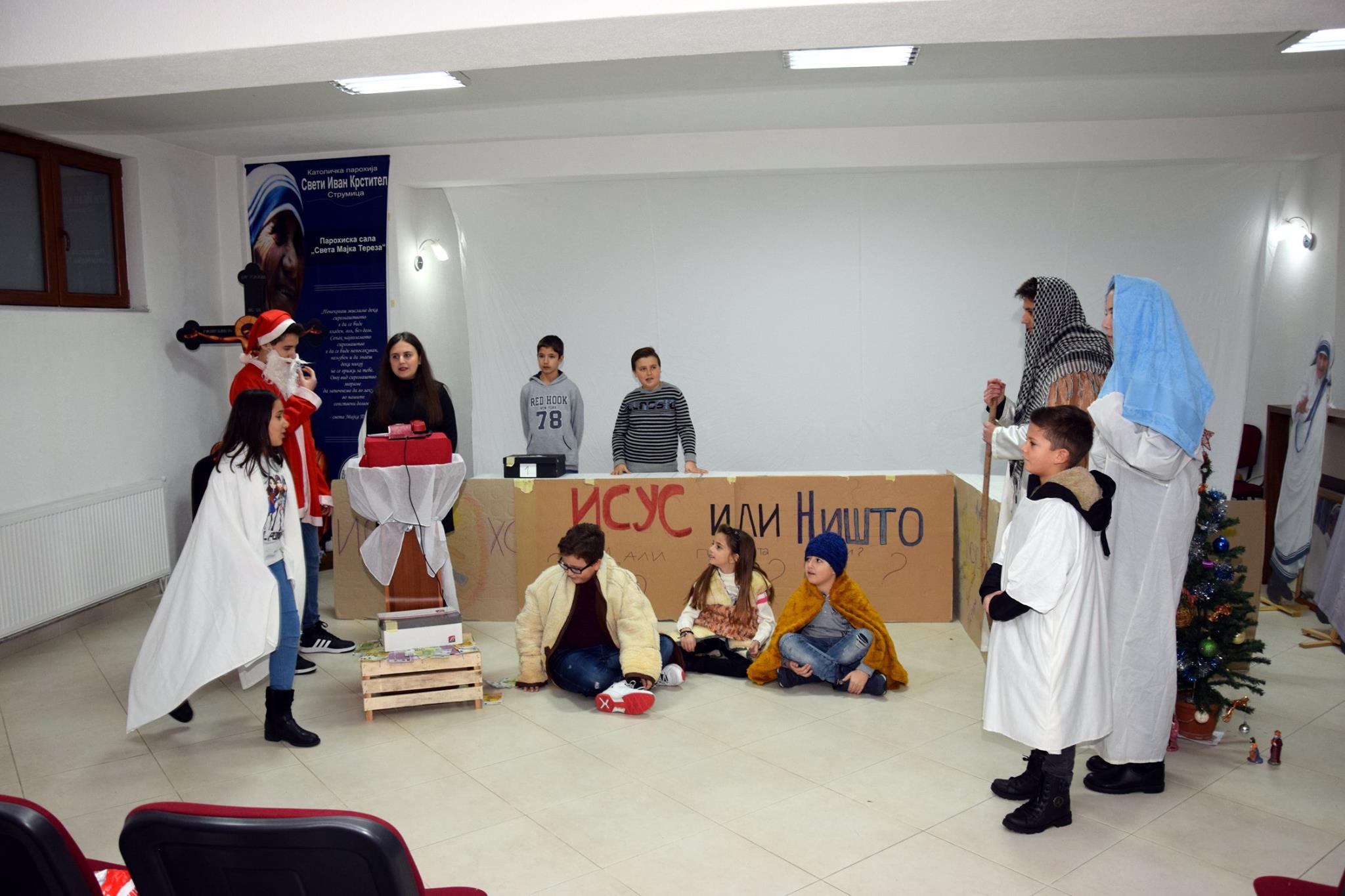 Претставата заврши со пеење на тропарот за празникот Рождество Христово, во изведба на децата и младите од парохијата.