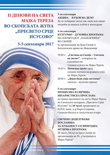 Во рамките на II Денови на Света Мајка Тереза ќе се спроведе иницијативата „Акција – Љубов на дело“ – да ги побараме околу нас оние кои имаат потреба од нашата љубов и милосрдие